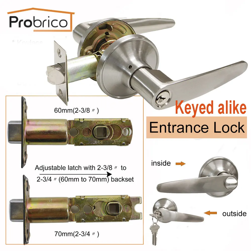 Best Seller Probrico Security Door Handles with lock Cylinder 3keys Keyed alike Entrance Lock for Interior Bedr