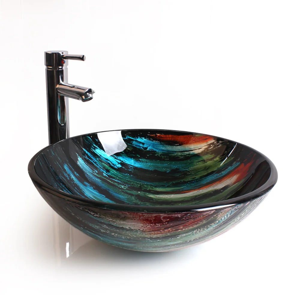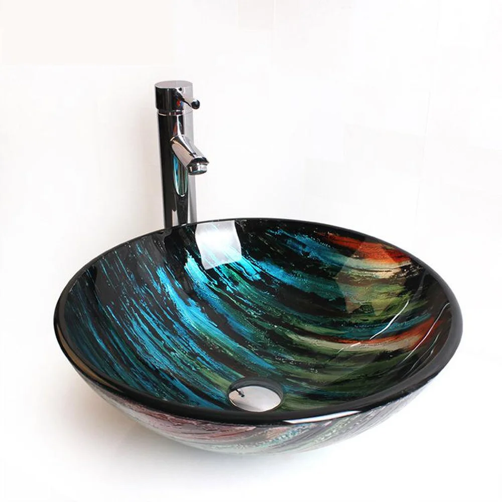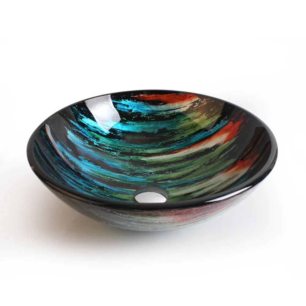 HOT Sale Creative Art Tempered Glass Washbasin Balcony Bathroom round glass sink bowl LO629221